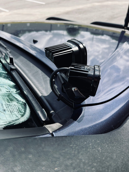 Unique to the market, our brackets allow you to mount two sets of lights to your A-pillars and position them exactly how you want it! You can also mount an off road radio antenna or mix and match what you choose to install, the choice is yours, we just made it possible!