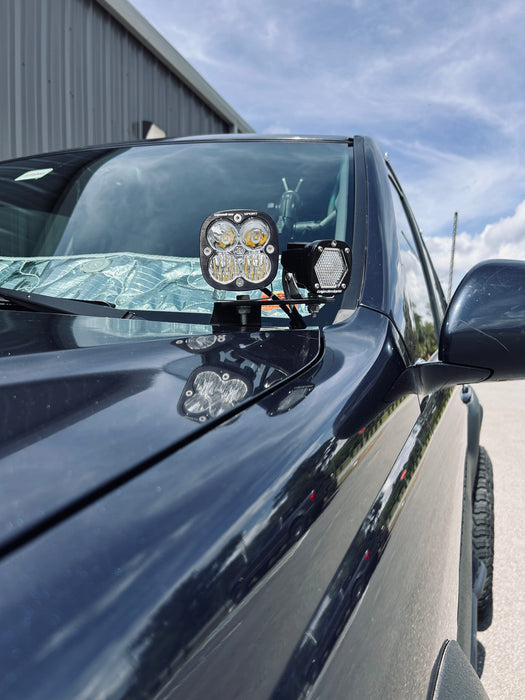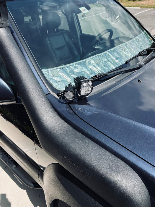 The A-pillar light brackets allow you to run additional off road lights on the hood of your GX and light up the area usually not covered by other lights. Super simple installation, the brackets attach to the hood hinges. No drilling required but minor trimming of plastic cowling is necessary.