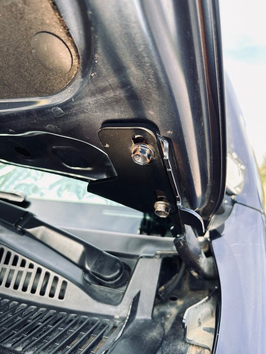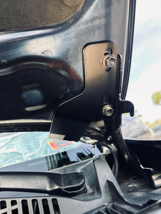 - No drilling required, brackets mount with oem hardware to the hood hinges. Minor trimming of the plastic required.