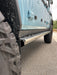 Our products are designed with heavy off road use in mind and rock sliders are no exception! With three per side, ultra strong brackets connecting the sliders to the frame, you can drop the entire weight of the vehicle on them and safely use the slider as a jack point. Main body of our rock slider steps is boxed steel construction, featuring raw aluminum step plate, and our ultra strong brackets. The same brackets we use on our Tubular Rock Sliders.